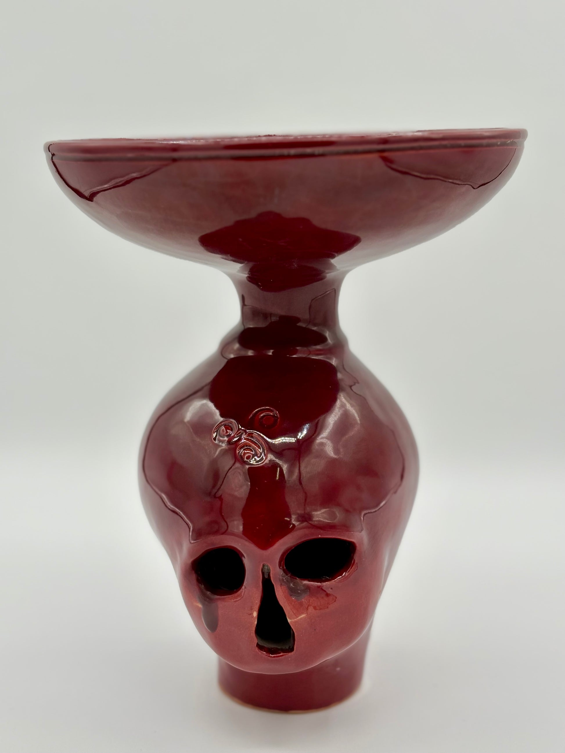 Coupe en céramique sur pied sculpté en forme de crâne, réalisée à la main à Aspiran