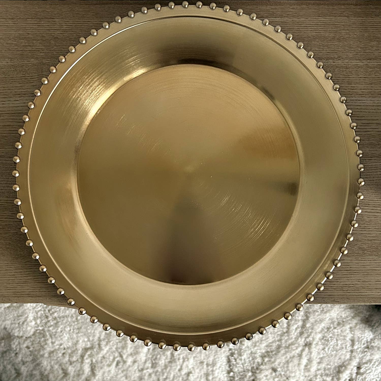 Set de table rond de 33 cm en polypropylène avec finition perlée dorée. Sa texture brillante apporte une note élégante à la table.